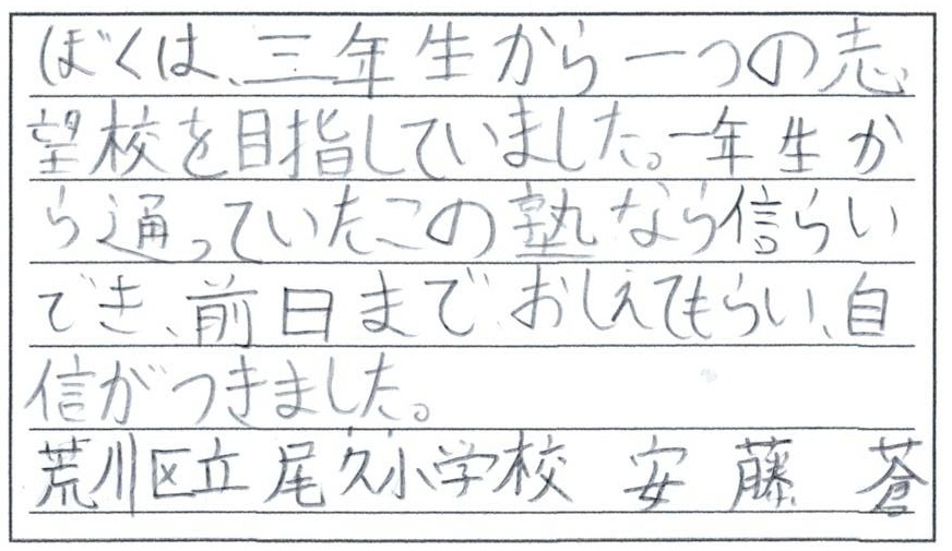 高校受験生は、都立高校・私立高校問わず、全員第一希望で合格してくださりました。